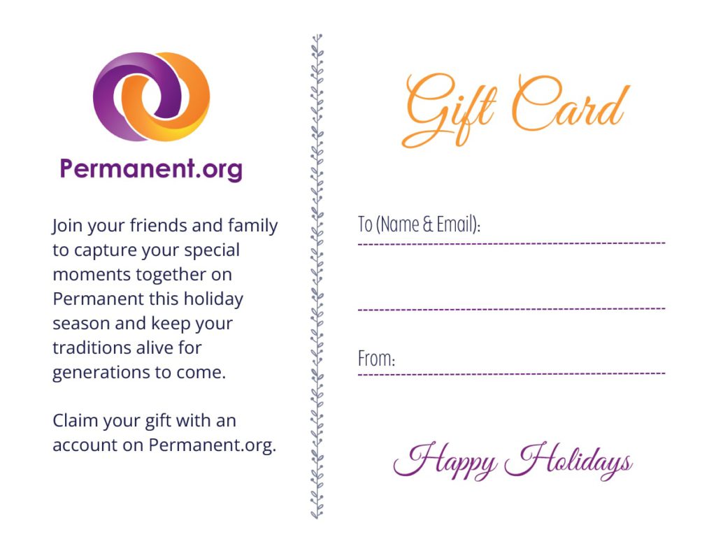 !['Tis the season for gathering! This gift entitles you to an archive on permanent.org. Join your friends and family to capture your special moments together on Permanent this holiday season and keep your traditions alive for generations to come. Claim your gift with an account on Permanent.org. To [name & email]: From:](jpg/pa-gift-note-tis-the-season-1024x791.jpg)