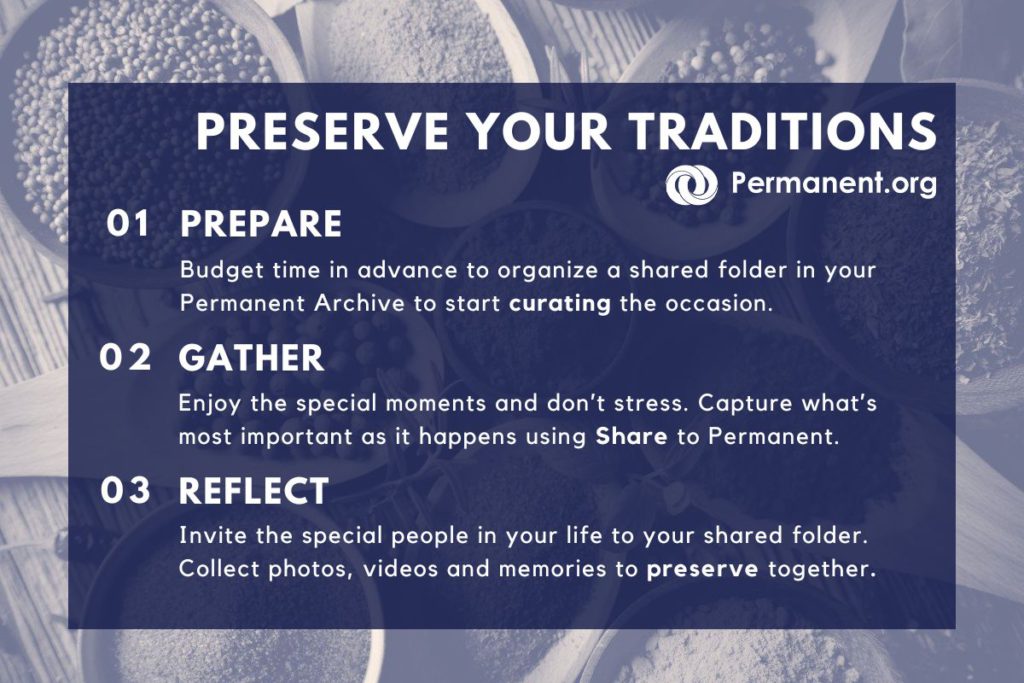 Send the share link to your friends and family so everyone can participate in preserving your cherished tradition together. Learn more about how our Mobile Share to Permanent feature makes it easy to archive in the moment.