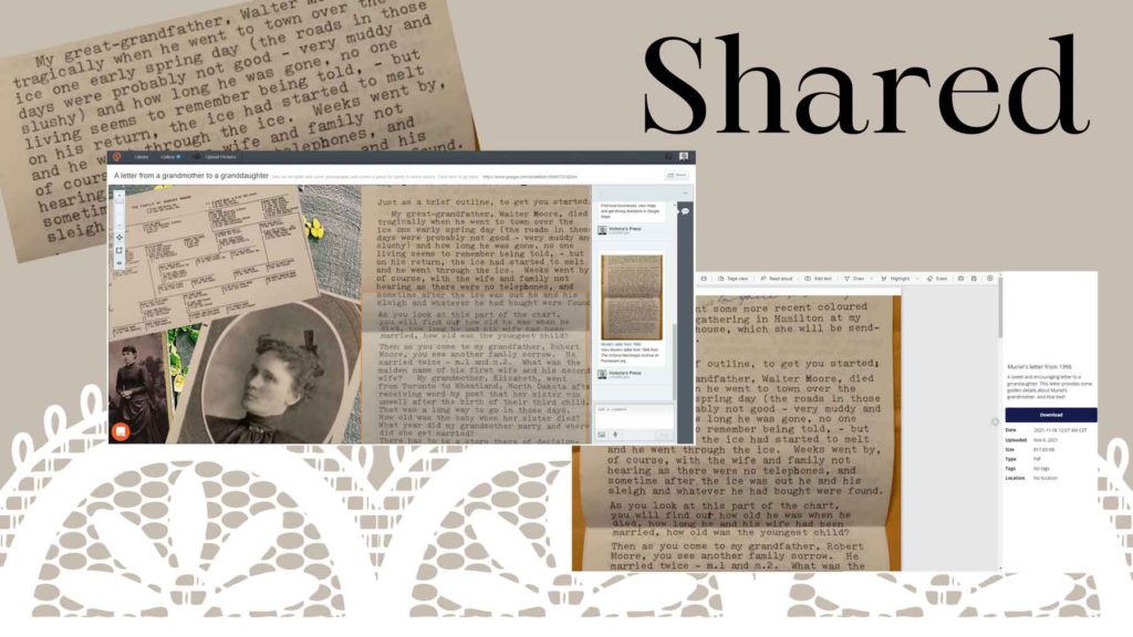 Stories are told in many forms. Using Ponga, I get to share stories through photos, voice recollections, documents stored safely and shared through Permanent.org, and links to external sources.