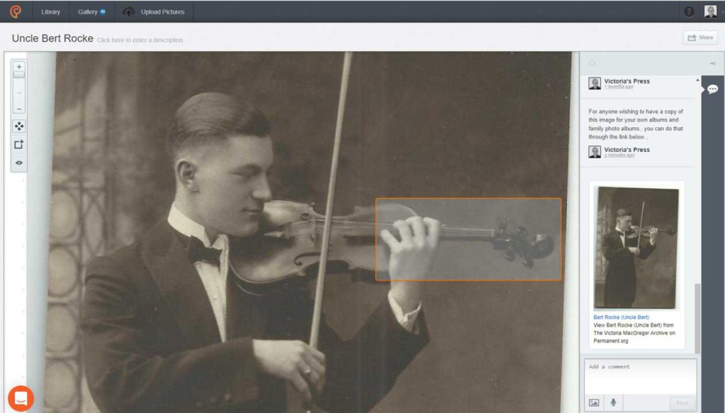 My cousins had no idea that he played the violin as a young man. You see, we all knew Uncle Bert only as a very successful property developer. Not a violinist! Well, I knew, because I had the photograph.